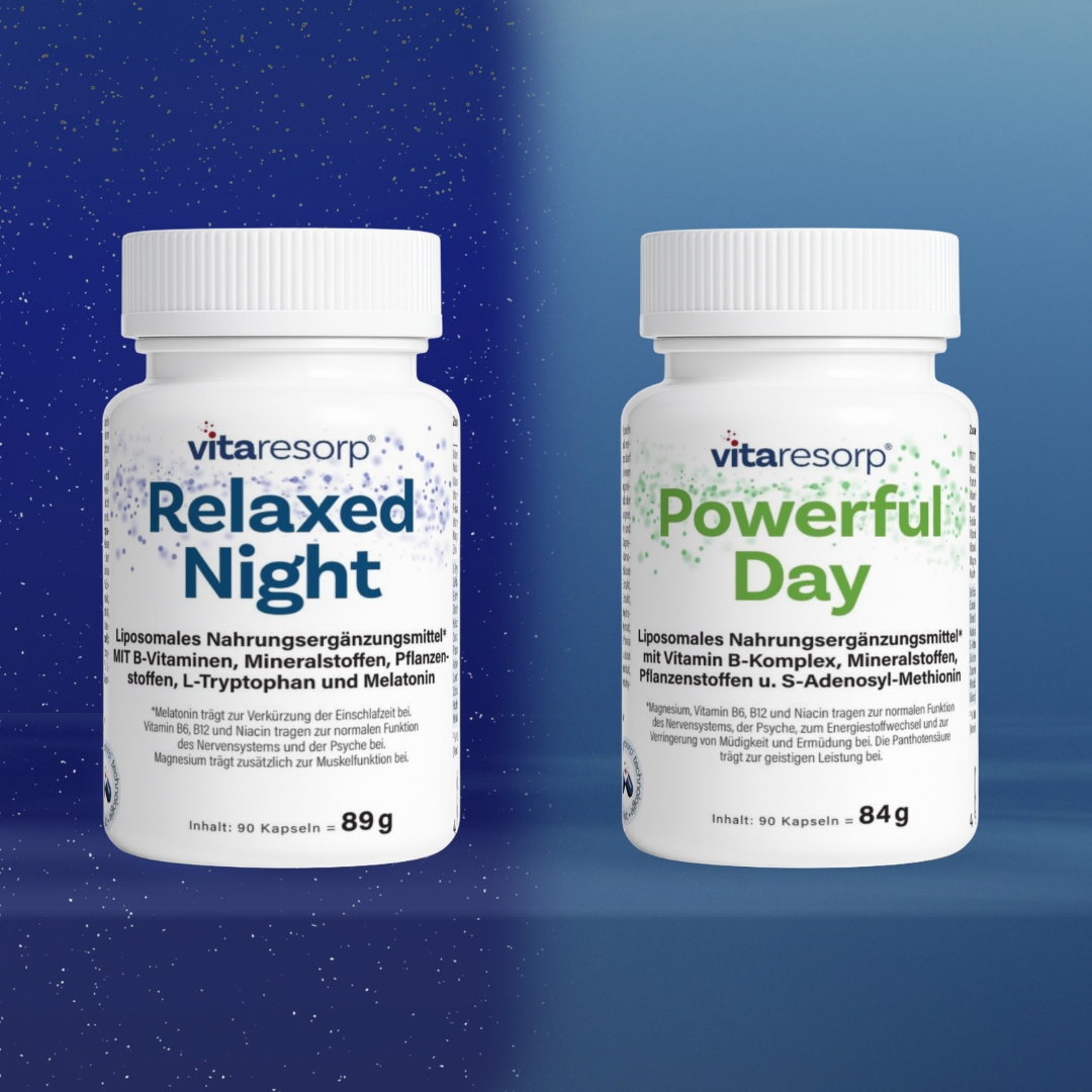 Wir haben das Day & Night Bundle entwickelt, um dir eine rundum abgestimmte Nährstoffroutine für den gesamten Tag zu bieten – morgens Energie, abends Balance. Mit unserer eigenen Vitaresorp® Technologie sorgen wir dafür, dass dein Körper die Inhaltsstoffe optimal aufnehmen kann.