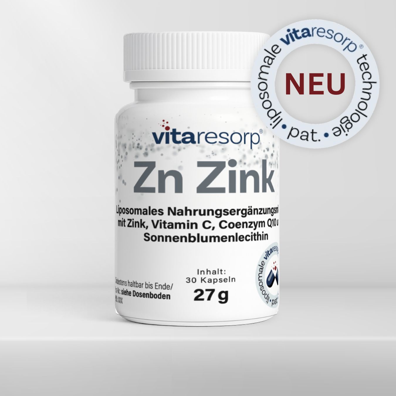Zn Zink von Vitaresorp® ist ein liposomales Nahrungsergänzungsmittel mit Zink, Vitamin C und Coenzym Q10.